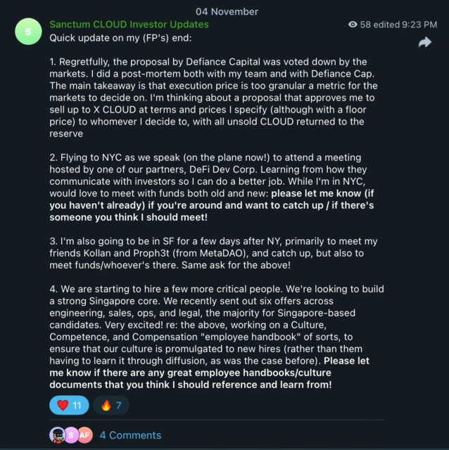 大多數人不知道的是,FP 和團隊為了展現這份在乎付出了多少努力。當 $CLOUD 空投的時候,他們不僅僅是跑個程式腳本或在試算表裡算數字。他們手動篩選了成千上萬個 Discord 頻道和 Telegram 聊天記錄,以識別真正的死忠用戶,並給予他們遠比大多數項目更慷慨的獎勵。
