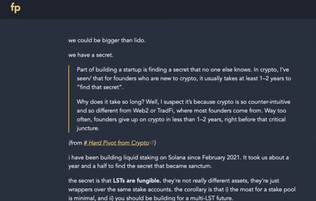 Therefore, instead of fighting to become the single biggest stake pool, FP saw a bigger opportunity in becoming the liquidity layer that unites all LSTs on Solana.